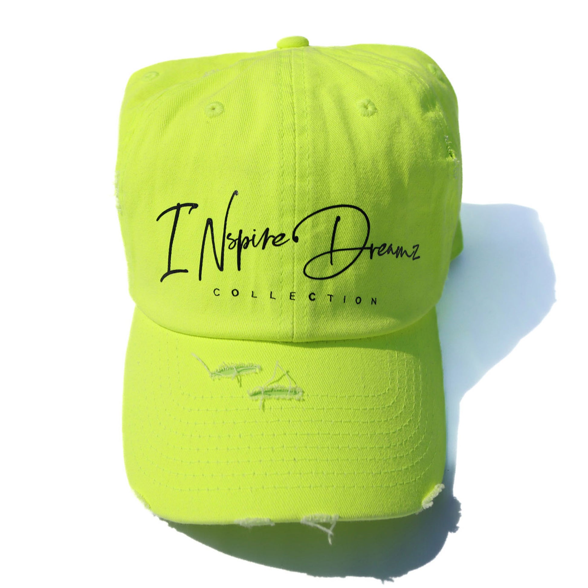 INspireDreamzCollection Neon Green Distressed Hat / Black Logo